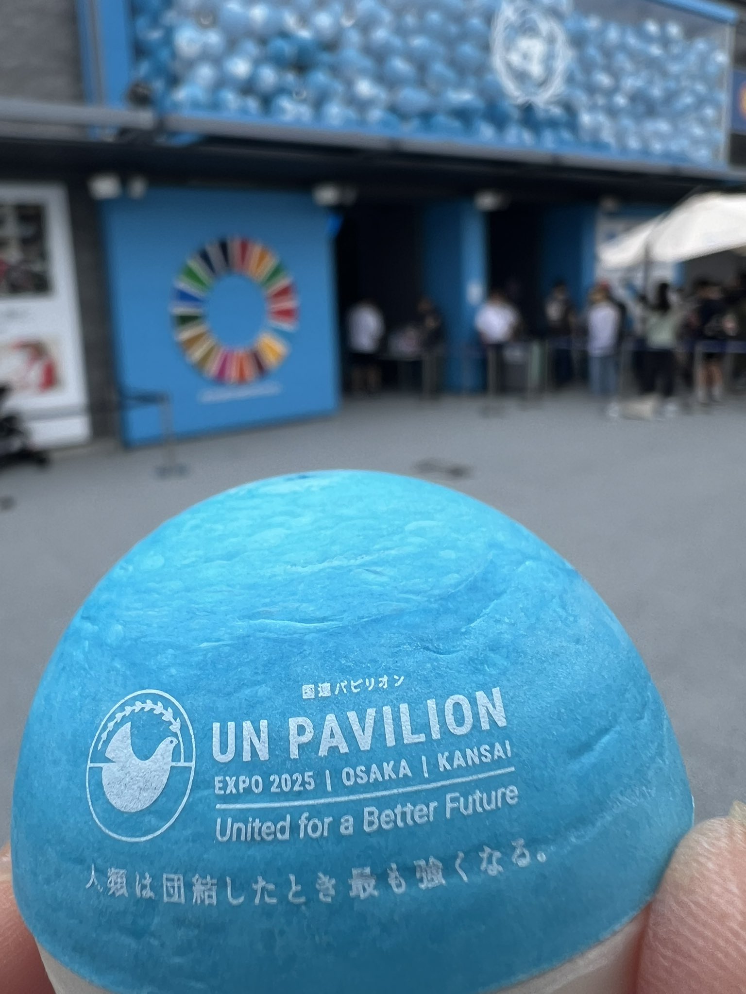 国連について元々関心があったことや、国連のグッズにも興味があり、また予約なしで並べば入れるパビリオンだったからです。